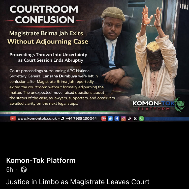 The reported events surrounding the stalled trial of the APC Secretary General raise serious concerns about the integrity of due process in Sierra Leone. When a magistrate leaves the courtroom without properly adjourning the matter and without granting or formally denying bail, it creates confusion and undermines public confidence in the judicial system. Justice must not only be done — it must be seen to be done.